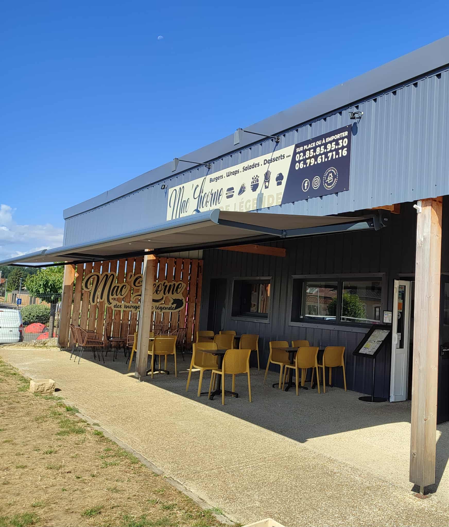 Produits locaux : Pain de la boulangerie Vaugeois – La viande de bœuf origine Pays de la Loire est hachée sur place par nos soins.